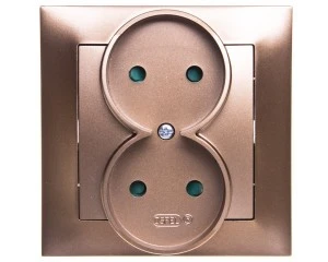 Simon 54 Gniazdo podwójne b/u 16A IP20 złoty mat DG2MZ.01/44