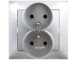 LOGI Gniazdo podwójne 2x2P+Z kompletne z przesłoną styków śrubowe 16A 250V Srebrny 25211