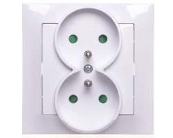Gniazdo podwójne z/u z przesłonami, kompletne z ramką białe