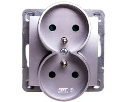 SONATA Gniazdo podwójne z/u z przesłonami srebro mat GP-2RZP/38