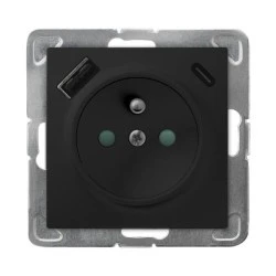 IMPRESJA Gniazdo pojedyncze z uziemieniem z przesłonami torów prądowych, z ładowarką USB A+C czarny metalik GP‑1YZPUSBAC/m/33