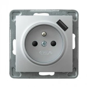 AS Gniazdo pojedyncze z uziemieniem z przesłonami torów prądowych, z ładowarką USB srebro GP-1GZPUSB/m/18