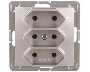 SONATA Gniazdo potrójne b/u 2,5A EURO srebro mat GP-3R/m/38