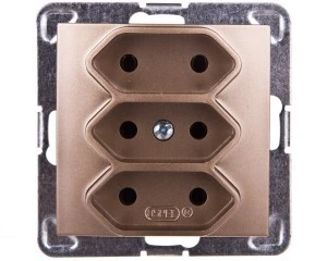 IMPRESJA Gniazdo potrójne b/u 2,5A EURO złoty metalik GP‑3Y/m/28