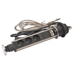 INCARA Gniazdo meblowe FLIP-UP z chowaną pokrywą 3x2p+z USB A+C 2,0 m metal 654850