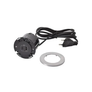INCARA Gniazdo meblowe DISQ 80 2p+z USB A+C wyjście kablowe 2,0 m metal/czarny 654708