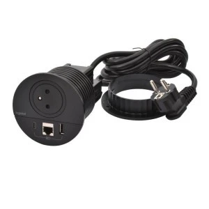 INCARA Gniazdo meblowe DISQ 60 USB A+C z pokrywą 2,0 m czarny 654733