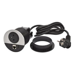 INCARA Gniazdo meblowe DISQ 80 2p+z USB A+C RJ45 2,0 m metal/czarny 654703
