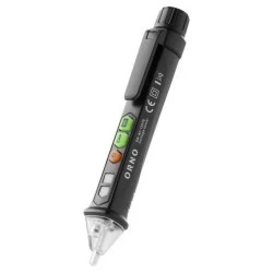 Indukcyjny (bezdotykowy) tester napięcia, za pomocą którego wykryjemy prąd stały i zmienny w zakresie 12-1000 V. Wygodna forma pióra, funkcja latarki, kolor czarny.