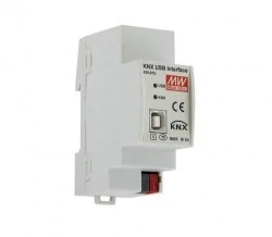 Interfejs KNX‑USB na szynę DIN, obsługa KNX i opcja wizualizacji, umożliwia adresowanie i ustawianie parametrów KSI‑01U