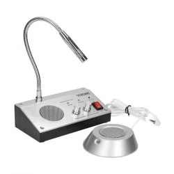 Zestaw interkomowy, który umożliwia bezpieczną komunikację w okienkach kasowych banków, szpitali, przychodni zdrowia, dworców, urzędów pocztowych i w innych miejscach, gdzie odbywa się kontakt z klientem. Prowadzenie rozmowy nie wymaga bliskiego kontaktu pomiędzy uczestnikami i użycia rąk. Interkom zapewnia wysokiej jakości połączenie głosowe i jest prosty w obsłudze, a dodatkowe potencjometry pozwalają na płynną regulację głośności. Mikrofon kasjera posiada elastyczny wysięgnik, dzięki czemu bardzo łatwo można dostosować go do indywidualnych potrzeb.