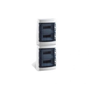 IP65 ABS Rozdzielnica modułowa 4X12 ECOLOGY (1500V DC) PE+N to niezawodna i nowoczesna rozdzielnica modułowa, stworzona z myślą o wymagających instalacjach. Dzięki stopniowi ochrony IP65 zapewnia pełną szczelność przed pyłem i wodą, a odporność udarowa IK08 gwarantuje trwałość nawet w trudnych warunkach. Przeznaczona do napięcia izolacji do 1500V. Jednorządowa konstrukcja mieszcząca 12 modułów pozwala na optymalne rozmieszczenie elementów, a transparentne drzwi ułatwiają kontrolę wnętrza. Szary kolor (RAL 7035) i estetyczne wykończenie pasują do każdego otoczenia. Wymiary: 870x310x148 mm.