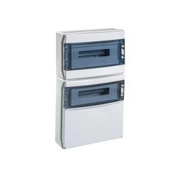 IP65 Rozdzielnica budowlana 2x18 (36) STAR (1500V DC) do gniazd przemysłowych to wytrzymała rozdzielnica natynkowa o stopniu ochrony IP65 i odporności mechanicznej IK08, wykonana z tworzywa sztucznego. Posiada 2 rzędy po 18 modułów, szynę DIN, pojedyncze transparentne drzwi oraz opcjonalny zamek na przycisk. Wymiary: 728 x 418 x 147 mm. Oferuje 44 wejść kablowych. Posiada II klasę izolacji i jest przystosowana do napięcia izolacji 1000V AC / 1500V DC.