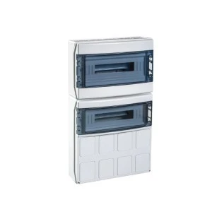 IP65 Rozdzielnica budowlana 2x18 STAR (1500V DC) z otworami na gniazda przemysłowe to wytrzymała rozdzielnica natynkowa o stopniu ochrony IP65 i odporności mechanicznej IK08, wykonana z tworzywa sztucznego. Posiada 2 rzędy po 18 modułów, szynę DIN, pojedyncze transparentne drzwi oraz opcjonalny zamek na przycisk. Wymiary: 728 x 418 x 147 mm. Oferuje 44 wejść kablowych i 8 otwory. Posiada II klasę izolacji i jest przystosowana do napięcia izolacji 1000V AC / 1500V DC.