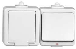 JANTAR Gniazdo pojedyncze z/u + łącznik pojedynczy podświętlany IP44 biały GWN‑J/S