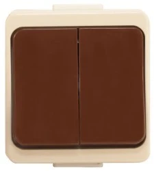 Jantar Łącznik 2‑klawiszowy, 2‑obwodowy natynkowy IP44 kombinacja kolorów brąz i beż WNT‑3Jb BE/BR