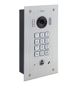 Jednoabonentowa stacja bramowa z wbudowanym zamkiem szyfrowym umożliwiającym otwieranie wejścia za pomocą kodu.