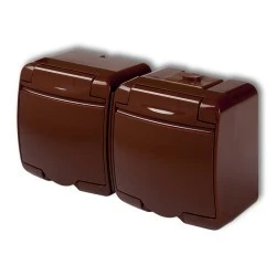 JUNIOR Gniazdo podwójne z/u (klapka brązowa) brązowy IP54 4GHE-2