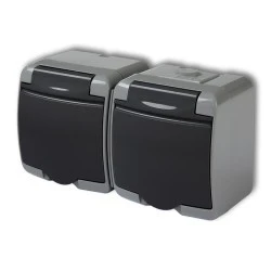 JUNIOR Gniazdo podwójne z/u (klapka popielata) popielaty IP54 10GHE-2