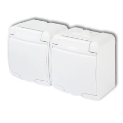 JUNIOR Gniazdo podwójne z/u (klapka biała) biały IP54 GHE-2