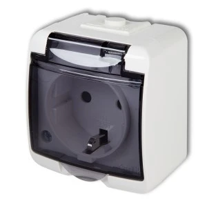 JUNIOR Gniazdo pojedyncze z/u (klapka dymna) biały IP54 GHE-1d