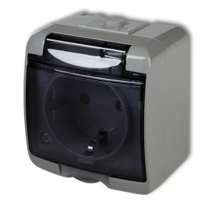 JUNIOR Gniazdo podwójne z/u (klapka popielata) popielaty IP54 10GHE-2