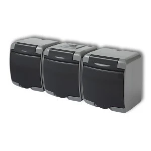 JUNIOR Gniazdo potrójne 3x(z/u) SCHUKO (klapka grafitowa) popielaty / grafitowy 30GHE‑3sp