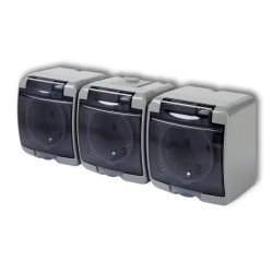 JUNIOR Gniazdo potrójne z/u SCHUKO (klapka dymna) popielaty 10GHE‑3sd