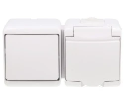 JUNIOR Łącznik jednobiegunowy + gniazdo hermetyczne (klapka biała) biały IP54 WGHH-1