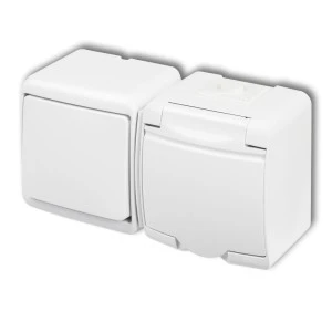 JUNIOR Łącznik jednobiegunowy + gniazdo hermetyczne (klapka biała) biały IP54 WGHH-1