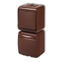 JUNIOR Łącznik jednobiegunowy + gniazdo hermetyczne (klapka brązowa) brązowy 4WGHP‑1
