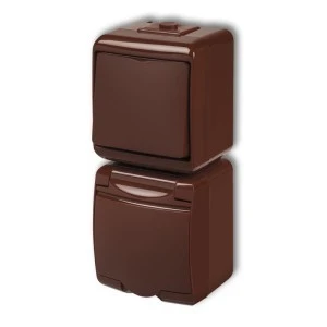 JUNIOR Łącznik jednobiegunowy + gniazdo hermetyczne (klapka brązowa) brązowy 4WGHP‑1p