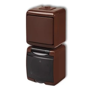 JUNIOR Łącznik jednobiegunowy + gniazdo hermetyczne (klapka dymna) brązowy 4WGHP‑1d