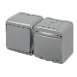 JUNIOR Łącznik jednobiegunowy + gniazdo hermetyczne (klapka popielata) popielaty 10WGHH‑1