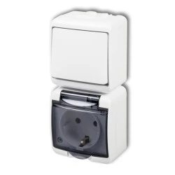 JUNIOR Łącznik jednobiegunowy + gniazdo hermetyczne (klapka biała) biały IP54 WGHH-1