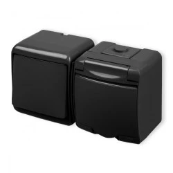 JUNIOR Gniazdo podwójne z/u (klapka popielata) popielaty IP54 10GHE-2