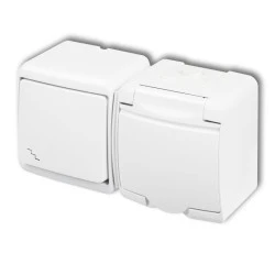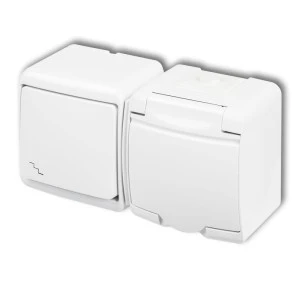 JUNIOR Łącznik jednobiegunowy + gniazdo hermetyczne (klapka biała) biały IP54 WGHH-1