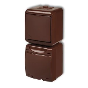 JUNIOR Łącznik schodowy + gniazdo hermetyczne (klapka brązowa) brązowy 4WGHP‑3