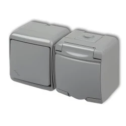 JUNIOR Łącznik schodowy + gniazdo hermetyczne (klapka popielata) popielaty 10WGHH‑3
