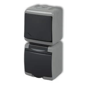 JUNIOR Łącznik schodowy z gniazdem hermetycznym (klapka grafitowa) popielaty / grafitowy 30WGHP‑3p