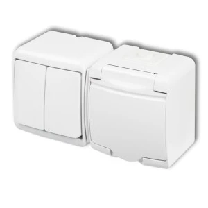 JUNIOR Łącznik jednobiegunowy + gniazdo hermetyczne (klapka biała) biały IP54 WGHH-1