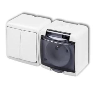 JUNIOR Łącznik jednobiegunowy + gniazdo hermetyczne (klapka biała) biały IP54 WGHH-1