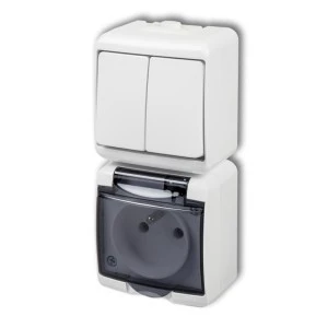 JUNIOR Łącznik jednobiegunowy + gniazdo hermetyczne (klapka biała) biały IP54 WGHH-1