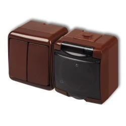 JUNIOR Łącznik świecznikowy + gniazdo hermetyczne (klapka dymna) brązowy 4WGHH‑2d