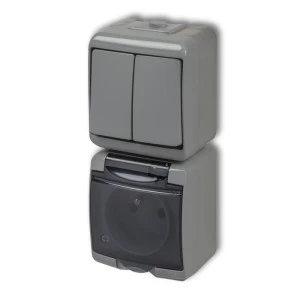 JUNIOR Łącznik świecznikowy + gniazdo hermetyczne (klapka dymna) popielaty 10WGHP‑2d