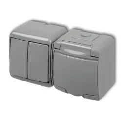 JUNIOR Łącznik świecznikowy + gniazdo hermetyczne (klapka popielata) popielaty 10WGHH‑2p