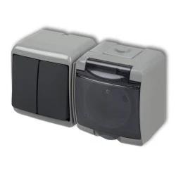 JUNIOR Łącznik świecznikowy z gniazdem hermetycznym (klapka dymna) popielaty / grafitowy 30WGHH-2d