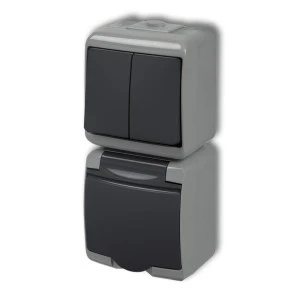 JUNIOR Łącznik świecznikowy z gniazdem hermetycznym (klapka grafitowa) popielaty / grafitowy 30WGHP‑2