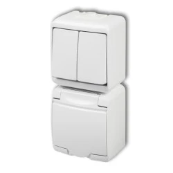 JUNIOR Łącznik jednobiegunowy + gniazdo hermetyczne (klapka biała) biały IP54 WGHH-1