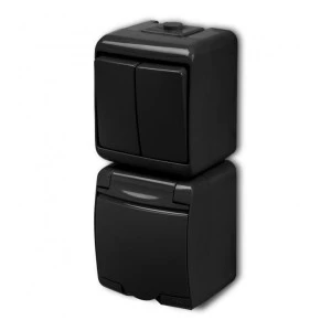 JUNIOR Gniazdo podwójne z/u (klapka popielata) popielaty IP54 10GHE-2